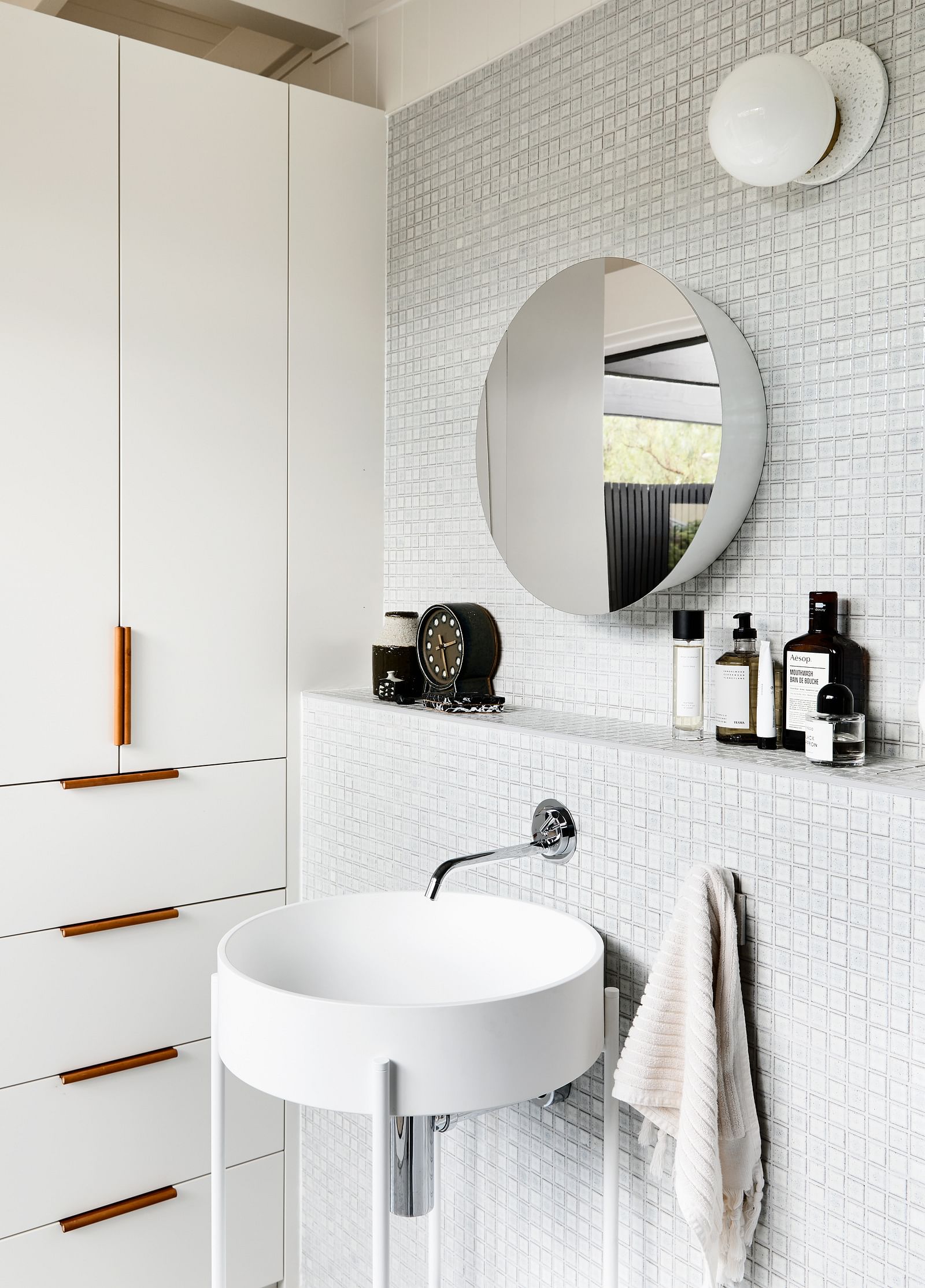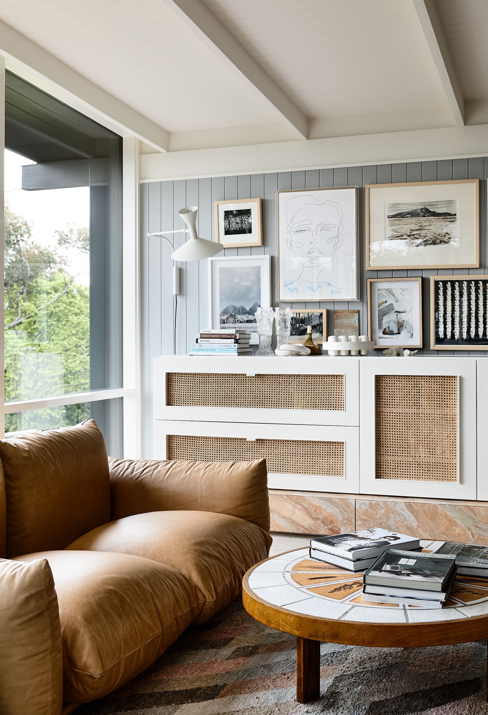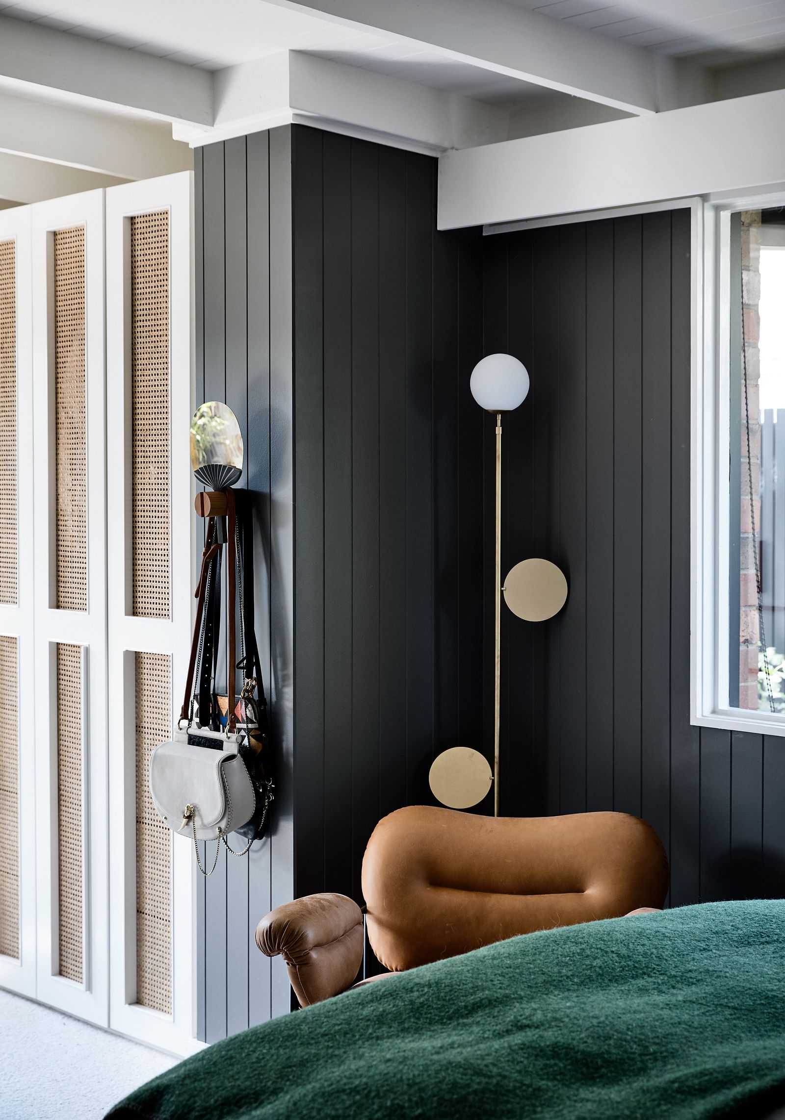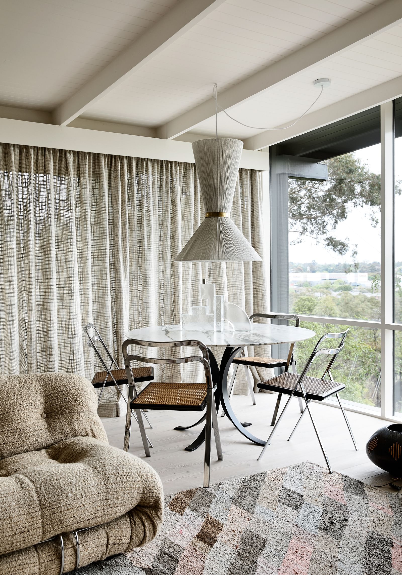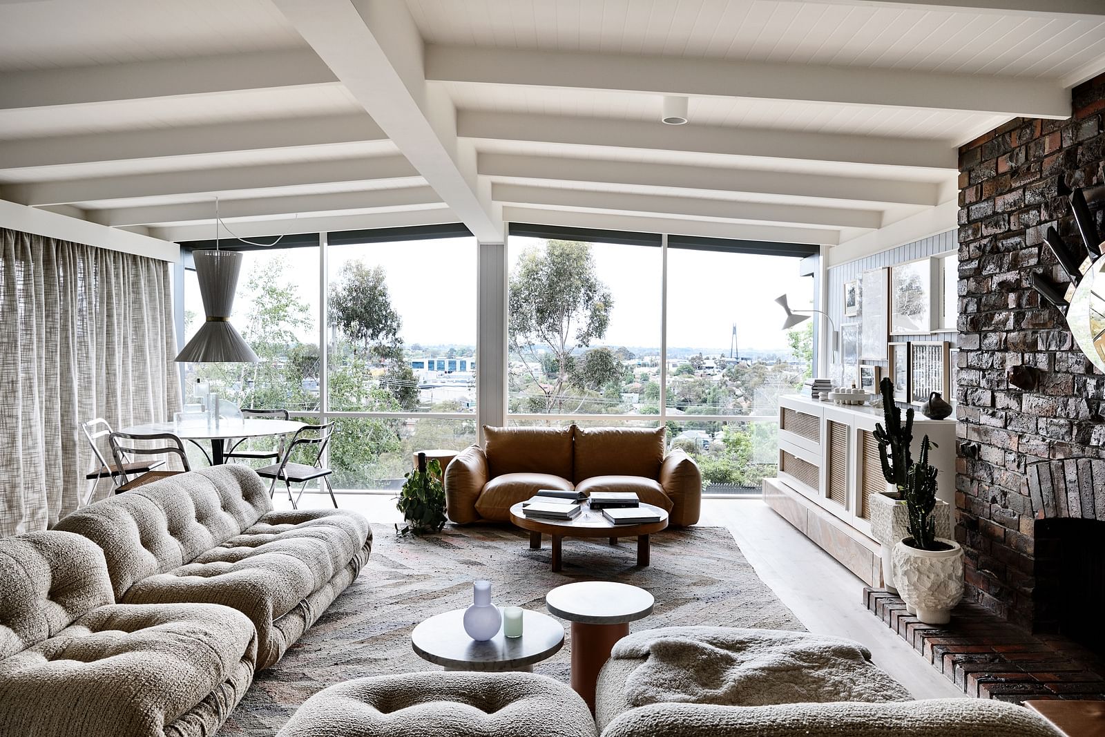 An extension to the front and rear of this mid-century home was designed to accommodate their growing family. Modifications remained sympathetic to the original house design, whilst offering the client a new canvas to re-decorate and re-envisage the space–what she does best!The original deck that wrapped around the elevated front façade was enclosed to extend the living room, giving opportunity for custom joinery and full height picture windows to optimise the view to the Dandenong mountains and beyond.The existing dining room window wall was replaced with a wall-to-wall sliding door for effortless and flowing connection to the newly built westerly entertaining deck and landscaped gardens beyond.To the rear of home, a former bedroom was extended to become the Master Suite, with new robes and an ensuite that opens out to a northern light-filled private deck built around an existing gumtree.Project Featured here