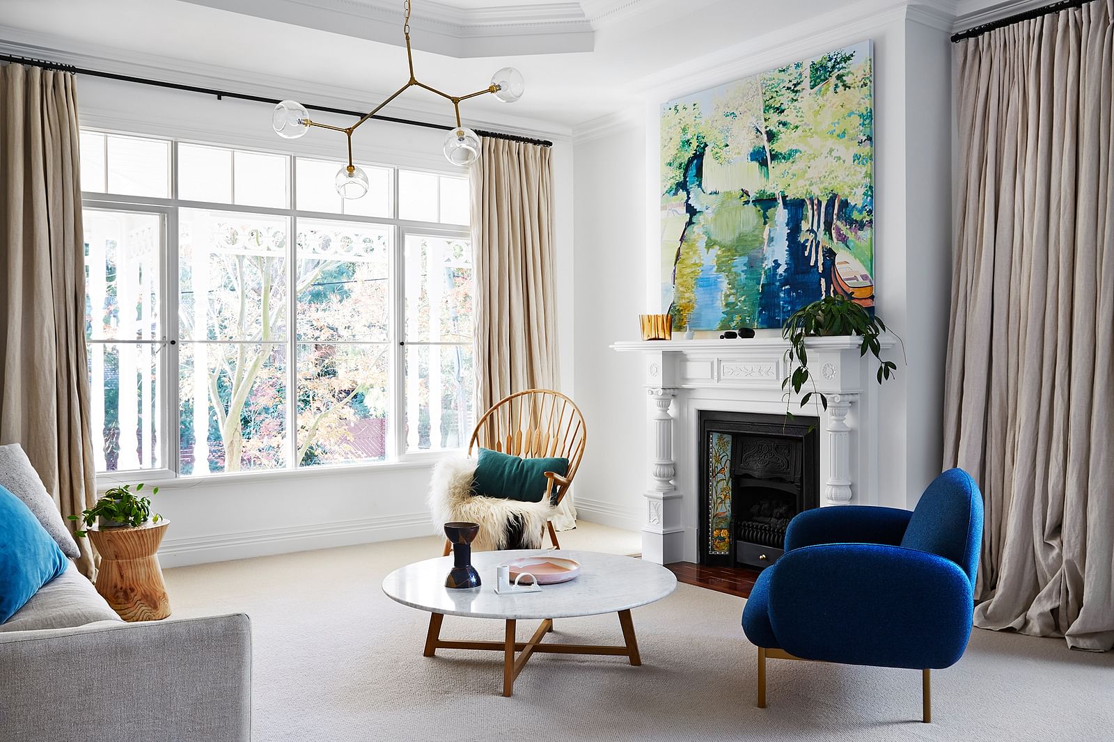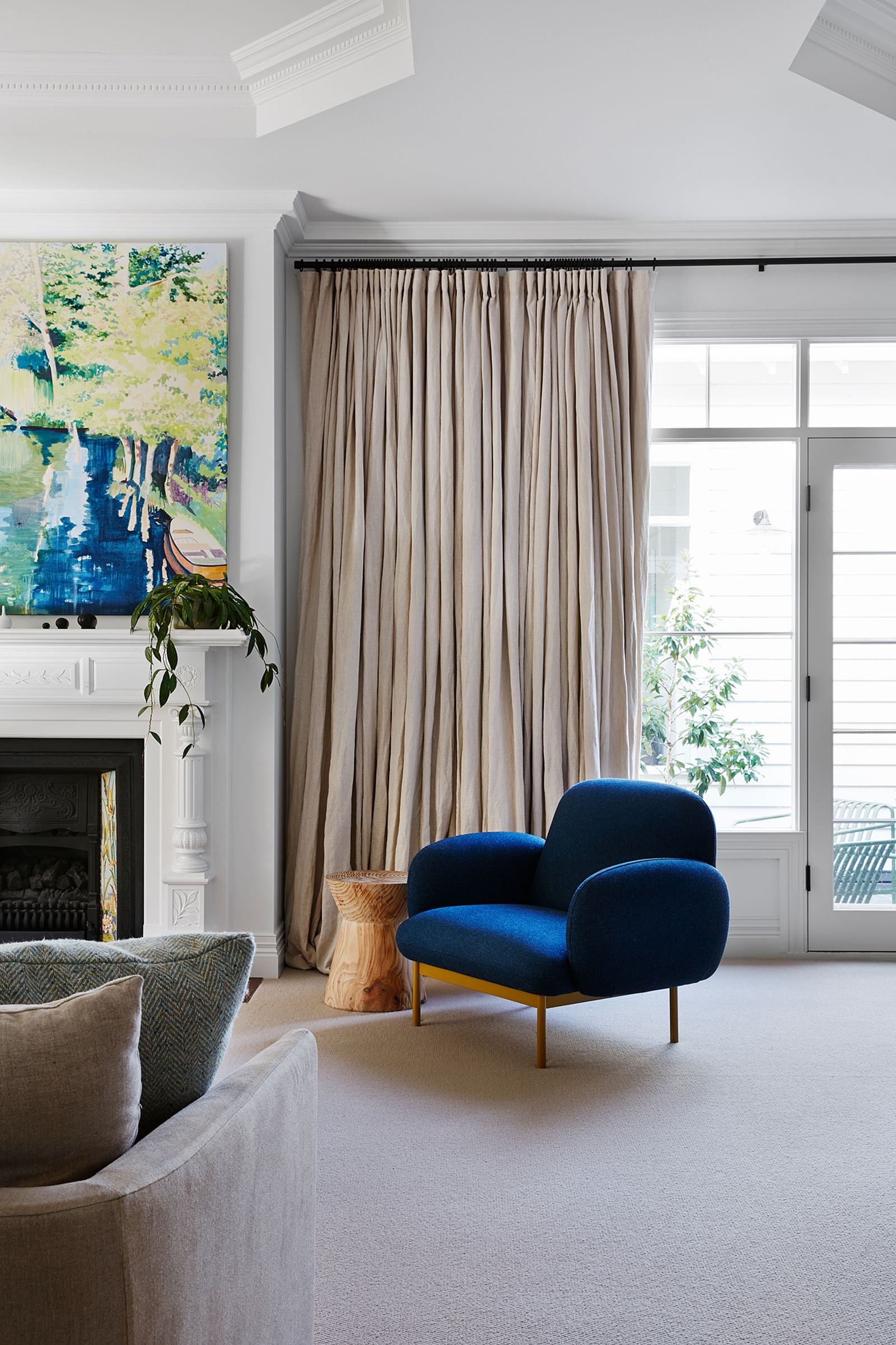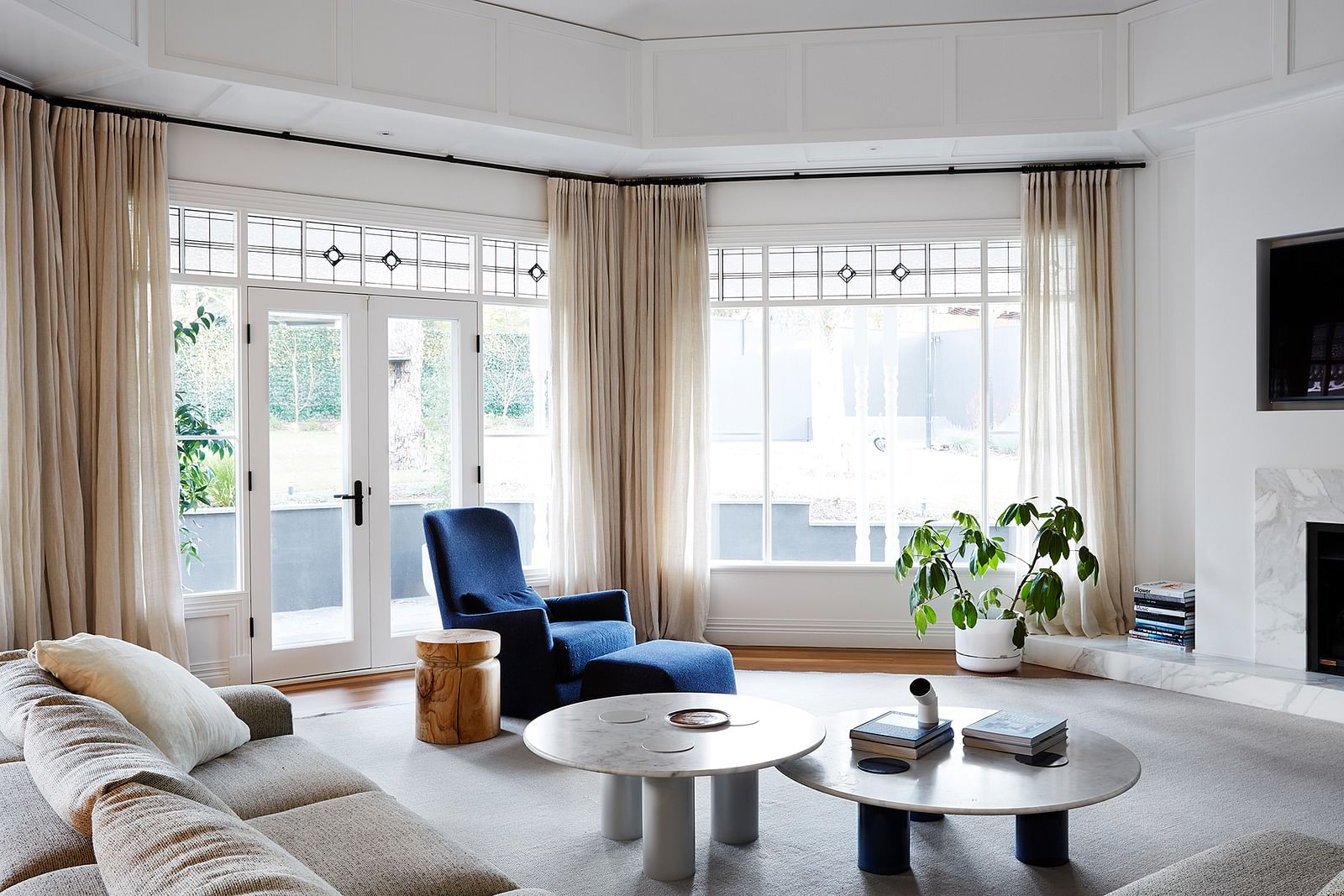 This property was a grand one in both scale and ornate detail. The spatial planning of the home flowed well, so it only required cosmetic updates which were, however, quite extensive. Paint, carpet, flooring, architectural hardware, lighting, and window furnishings throughout set the backdrop for the furniture to come.The natural proportions of the spaces demanded furniture bold and heavy enough to match it. Palettes were pulled from existing stain glass, decorative scenic tiles on fireplaces, existing encaustic tiles and the surrounding landscape. The balance of sophistication and fun captures the personality of our clients, a family of six who love to gather and entertain.