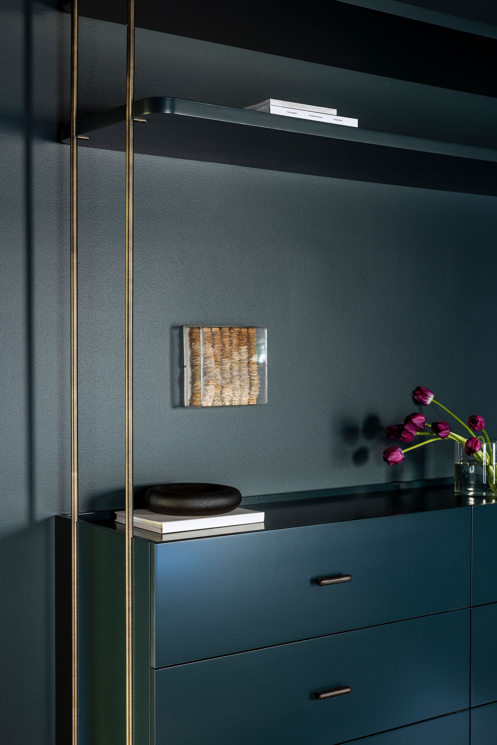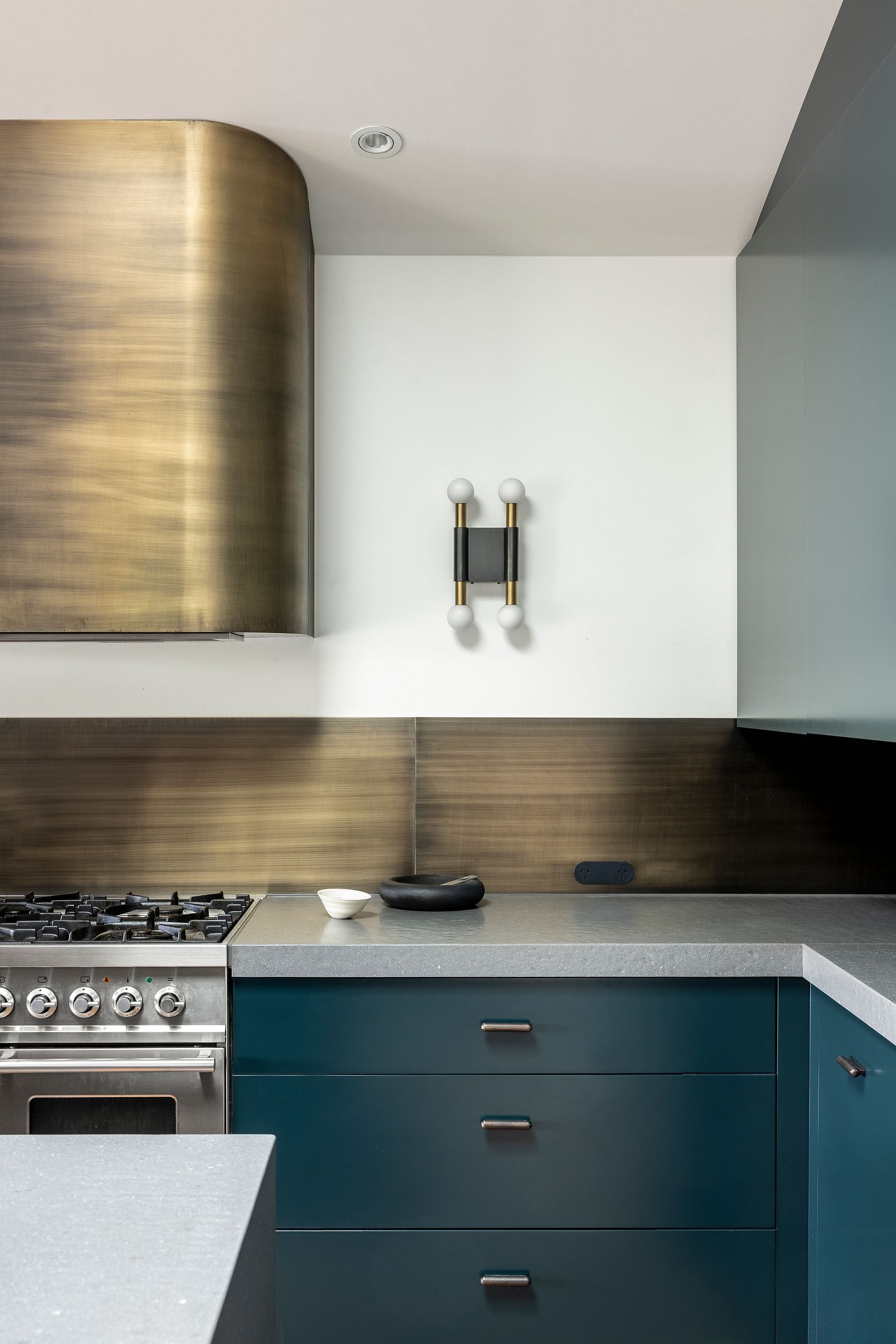The custom steelwork throughout the joinery design, kitchen splashback and rangehood is the detail which brings lighting selections and joinery hardware synonymously together.